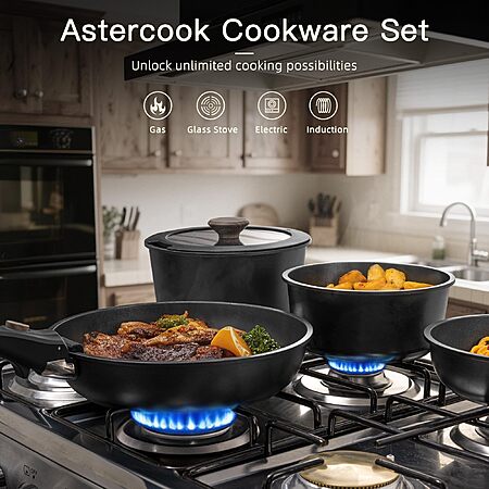 Astercook Non Stick RV Pots and Pans Ceramic Kitchen Cookware Set with Detachable/Removable Handle, Oven Safe, Induction Ready, Stackable, Black, 21 pcs $59.97
