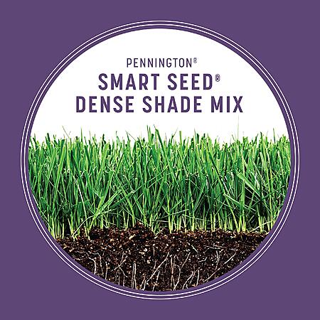 If areas of your lawn don't see much sunlight, you may have had some difficulty growing thick, green grass. Requiring only 2-6 hours of sunlight, Pennington Smart Seed Dense Shade offers the perfect mix of Tall Fescue and Fine Fescue to thrive in shady conditions. This grass seed results in a strong and durable lawn. Plant it in early spring or early fall and see results in 8 to 16 days. This 3-pound bag covers up to 750 square feet for over seeding an existing lawn and 250 square feet for starting a new lawn from scratch.