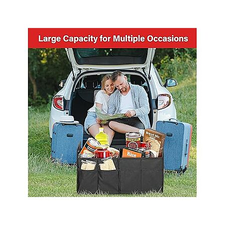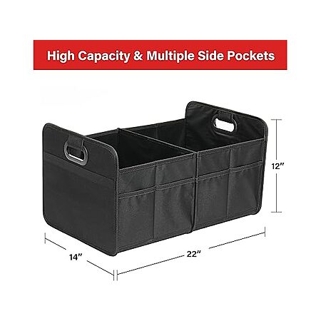 22" x 14" Simple Deluxe 2 Compartment Collapsible Car Trunk Organizer w/ Outer Pockets (Black) for $6.99 -