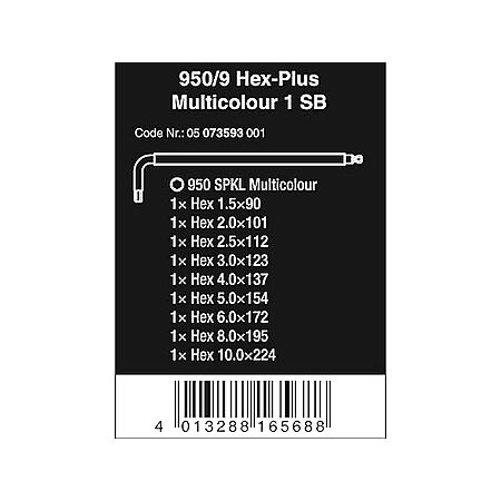 Wera Tools 5073593001 950/9 Hex-Plus Set Metric for $41.99 -
