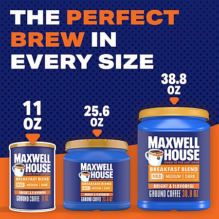 11-Ounce Maxwell House Breakfast Blend Ground Coffee on sale for $3.12 - 25% off with coupon - 5% off when you checkout via Subscribe & Save =