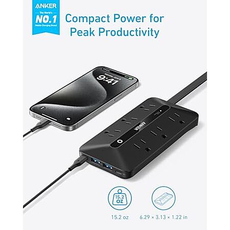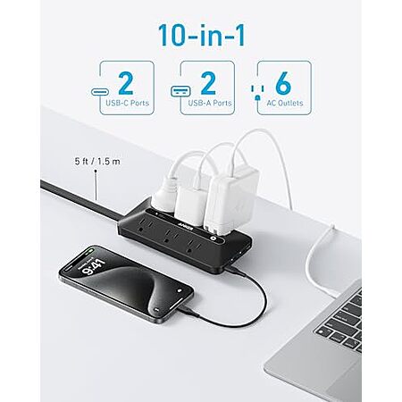 $19.99* | 5' 10-in-1 Anker Flat Plug Power Strip w/ 6 AC, 2 USB-A & 2 USB-C at Amazon