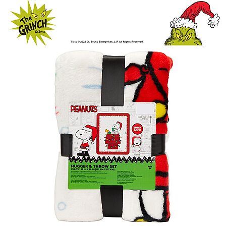 2-Piece Peanuts Snoopy Holiday Super Soft Plush Pillow and 40" x 50" Throw for