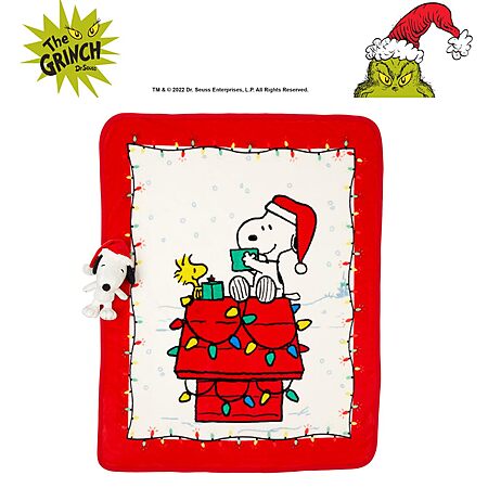 - ITEM INCLUDES: A Snoopy designed decorative plush pillow measuring approximately 8" (L) x 8" (W). The throw measure 40" (W) x 50" (L). A great gift idea for any occasion and a cute home decor addition for your child's character collection. FUN AND CUDDLY DECORATIVE PILLOW: Shaped like Snoopy, this soft pillow pup is a child's best friend. Made of super soft plush material, this adorable and huggable pillow pet is a comfy accessory. To maintain colour and vibrancy, simply spot clean as needed. SOFT PLUSH THROW: Your little one would love to snuggle up with their favorite character by their side. The throw is made of soft silk touch material for a comfortable feel perfect to snuggle when napping or cuddling on the couch. ENJOY ANYTIME: Fun and comfy for napping and cuddling at home or travel, this pillow pal and throw set makes a great accessory for use in the car, camping, daycare, school, bedroom, nursery, playroom and sleepovers. This pillow pet stuffed animal and throw set is the perfect companion for toddlers and children to snuggle while sleeping or playing. PEANUTS DESIGN: Get cozy this holiday season with the beloved Peanuts characters! This hugger and throw set features Snoopy, bringing warmth and smiles to your festive celebrations. Whether you're watching your favorite holiday specials or adding a fun, nostalgic touch to your home, this set will make every moment special. Super soft and perfect for both kids and adults, it's a must-have for Peanuts fans of all ages.