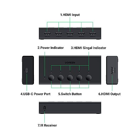 UGREEN 5 In / 1 Out 4K 60Hz HDMI Switch / Splitter w/ Remote $26.99 + Free Shipping w/ Prime or on $35+