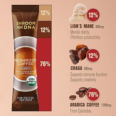 [SnS, AC] $5.99* | 20-Count 0.09-Oz ShroomDNA Mushroom Coffee Blend w/ Chaga & Lion's Mane at Amazon