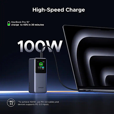 UGREEN - Nexode 130W 20,000mAh Power Bank with Smart TFT Display, 3-Port Portable Charger for Laptops, Tablets, Cell Phones - Black $56.99 Bestbuy.com