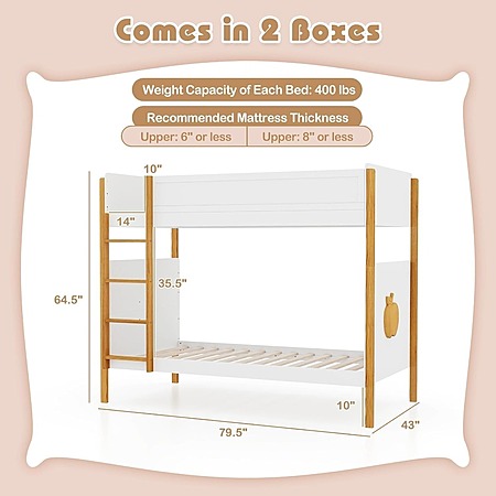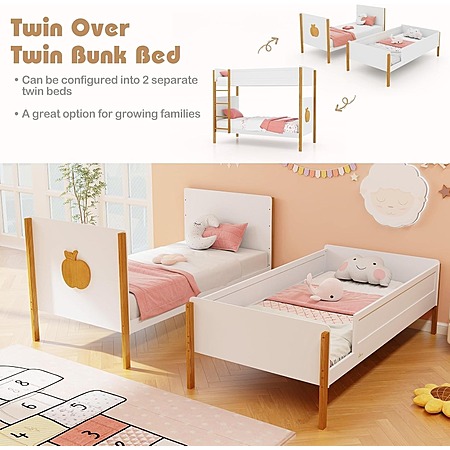 Convertible Solid Wood 2-in-1 Twin Over Twin Bunk Bed w/ Integrated Ladder & Safety Guardrails $170 + Free Shipping