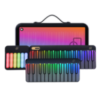 PopuPiano is a portable keyboard with light-guided keys that work with an Free app to help you follow notes step-by-step, making it easier to learn compared to a traditional keyboard.