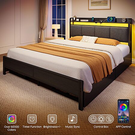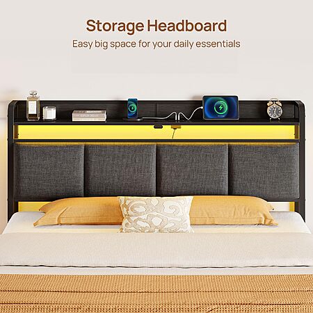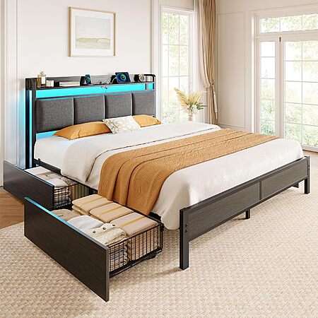 Amazon.com has Rolanstar Bed Frame Full Size with Charging Station and LED Lights, Upholstered Storage Headboard with Drawers, Heavy Duty Metal Slats, No Box Spring Needed, Noise Free, Easy Assembly, Dark Grey on sale for $159.99.