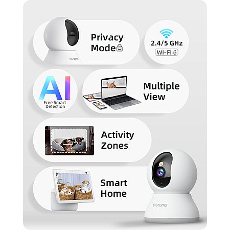 blurams 5G Cameras for Home Security, 2K Pet Camera with Phone App, 360° PTZ Indoor Camera w/Dual-Band WiFi6, Free Human/Motion/Sound Detection, 2-Way Talk2Pack $32.87