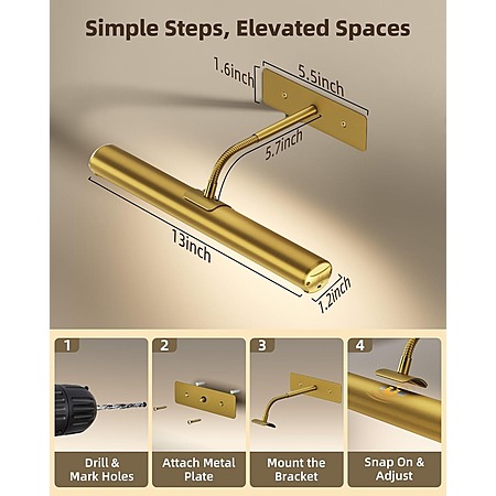 2-Pack EZVALO 13" Gold Rechargeable Picture Lights $25.89 + FS w/ Prime or orders $35+