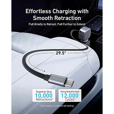- Retractable Cable: Built-in 29.5-inch retractable USB-C cable extends over 2 inches and retracts with a short pull.