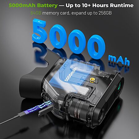 WOSPORTS 4K Night Vision Goggles: 16MP, up to 80x Magnification, 10X Optical & 8X Digital Zoom, 1315FT Vision, 3" Screen, 5000mAh $71.49
