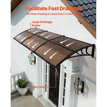 Efficient Drainage Design: Designed with an upgraded directional drainage sink, this polycarbonate door awning quickly guides rainwater away from your entrance. From light drizzles to heavy downpours, it keeps your doorway clean, dry, and slip-free