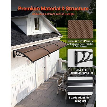 Strong & Durable Construction: Made with high-transparency polycarbonate panels & reinforced ABS brackets, this awning for door entrance offers excellent load bearing. It's shock-resistant, flame-retardant, noise-reducing, and adds a clean, modern look to your exterior