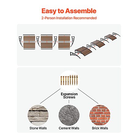 Quick DIY Installation: This exterior door canopy comes with a complete accessory kit, clear installation instructions, and two types of mounting screws for brick, concrete, or wooden walls. Easy for one-person DIY installation. Measure your space for an ideal fit