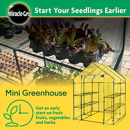 Amazon [amazon.com] has Miracle-GRO 4'8" x 4'8" x 6'5" Outdoor Mini Walk-in Greenhouse Plant Tent, with 8 Wire Shelves, Clear for $49.66 - Shipping is free