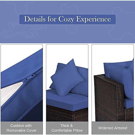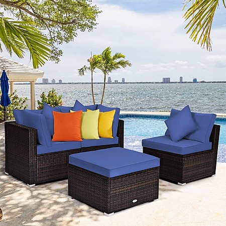 Tangkula 4-Piece Patio Rattan Sofa Set w/ Removable Cushions & Pillows (Blue) $279.64 + Free Shipping