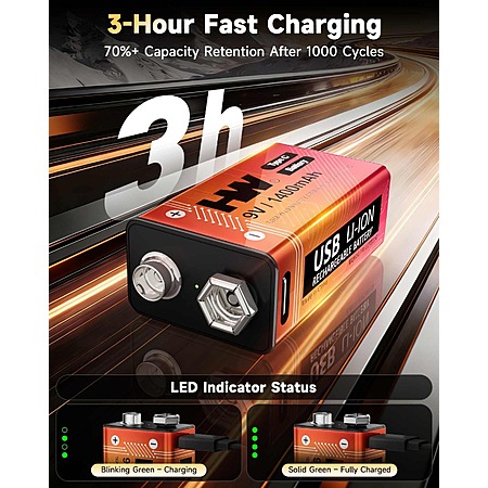 4-Pack HW 9 Volt 1400mAh Rechargeable Lithium Batteries $13 + Free Shipping w/ Prime or orders $35+
