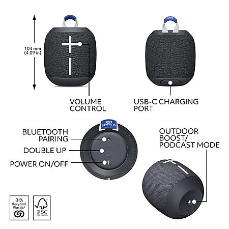 Ultimate Ears WONDERBOOM 4 Portable Waterproof Bluetooth Speaker with Big Bass and 360-Degree Sound, Dustproof Floating Speaker with 131ft (40m) Range- Black $69.99
