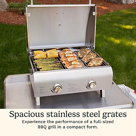 Cuisinart Chef's Style Tabletop Portable Propane Grill, 20,000 BTU Stainless Steel 2-Burner Outdoor Gas Grill CGG-306 $164.99