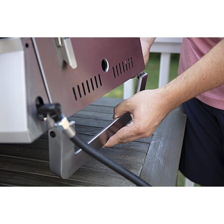 This one works with 1lb cylinders out of the box. Char-Broil-Stainless-Portable-Liquid-Propane/dp/B0079TODWG?