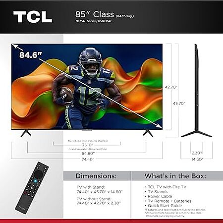 $999.99 | 85″ TCL Mini LED QLED 4K HDR Gaming Streaming Television (85QM64L, 2026 Model) at Amazon