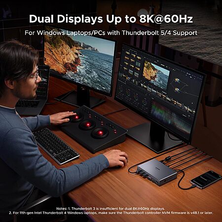 - 120Gbps Thunderbolt 5 Speed: Intel-certified Thunderbolt 5 reaches 120Gbps uni-directional/80Gbps bi-directional speed, transferring a 6GB 4K video in about 1 second. Backward compatible with Thunderbolt 4/3 and USB4.