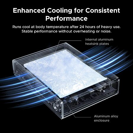 - Efficient Thermal Design – Engineered with aluminum alloy construction and internal thermal management to maintain stable performance during extended use. Fanless design ensures silent operation, equipped with a security lock for enhanced safety.