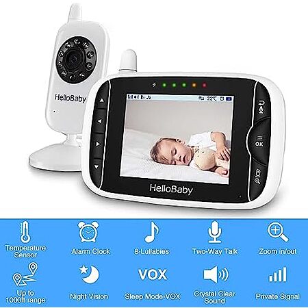 Model: HelloBaby Video Baby Monitor with Camera and Audio - 3.2Inch Baby Camera Monitor LCD Display, Baby Monitor No WiFi, Two-Way Audio, VOX Mode, Infrared Night Vision, Temperature Monitoring, Lullaby