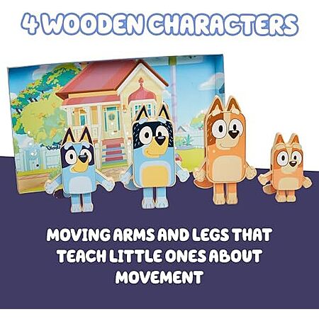 Model: Bluey Wooden Character Figures – 4 Colorful Wooden Figures – FSC Certified for Children 3 Years and Up
