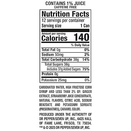 Model: Canada Dry Fruit Splash Strawberry Ginger Ale Soda, 12 fl oz cans, 12 pack
