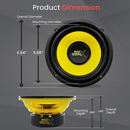 Model: Pyle 6.5" Mid Bass Woofer, 300 Watt - Yellow