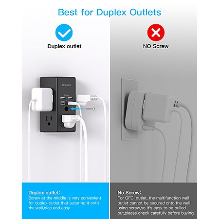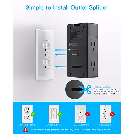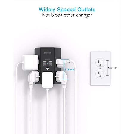 One Beat 5 Outlet Extender with 4 USB Ports (2x USB-A, 2x USB-C w/ power delivery) (Black) - $9.99