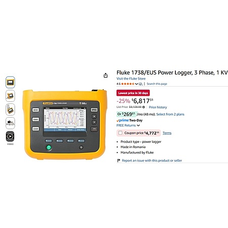 Fluke 1738/EUS Power Logger, 3 Phase, 1 KV $4,772.11 w/coupon $4772.11