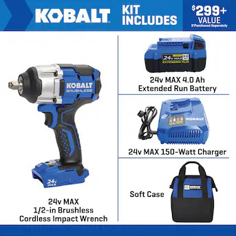 Kobalt 24-volt Variable Speed Brushless 1/2-in Drive Cordless Impact Wrench (24v 4ah battery and charger included) $99