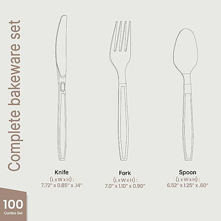 Model: Disposable Cutlery Combo Set, 100 Pieces of Forks, Knives & Spoons, Heavy Duty Plastic Silverware, BPA-Free Food-Grade Materials, Heat-Resistant, Reusable Utensils for Parties and Everyday Use, Clear