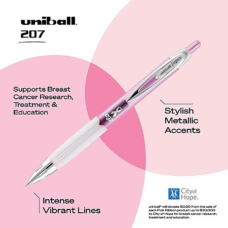 36-Count Uniball 207 Pink Ribbon Retractable Gel Pens (Black Ink, 0.7mm) $20.16 w/ S&S + Free Shipping w/ Prime or on $35+