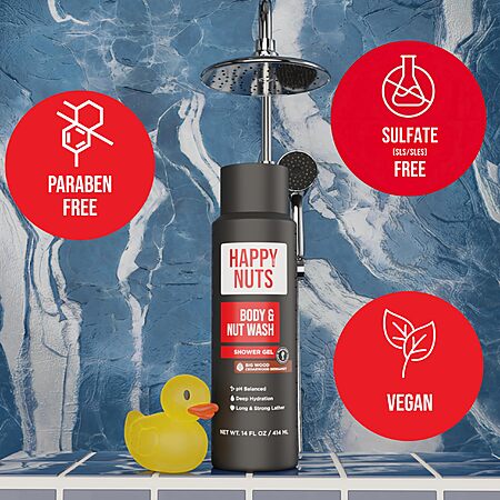 HAPPY NUTS Big Wood Body and Nut Wash - Moisturizing Men's Shower Gel, Bodywash with Deep Cleanse for Sensitive Skin - Men's Body Soap for $ 12.59 (Reg $ 18) when you S&S