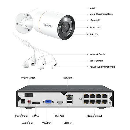 REOLINK 12MP Wired Security Camera System, 4pcs H.265 12 Megapixel UHD PoE Surveillance Cameras, Person Vehicle Pet Detection 8CH NVR with 2TB HDD, RLK8-1200B4-A $679.99
