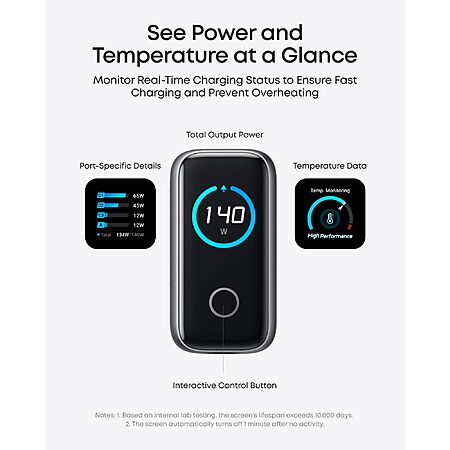 Anker MacBook Charger,140W Max 4-Port GaN USB C Charger Block with Smart Display,Fast Charger USB C Power Adapter,Touch Controls for MacBook,iPad,iPhone (Include 5FT Cable) $64.99