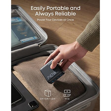 Model: Anker Laptop Charger, 140W MAX USB C Charger, 4-Port Multi-Device Fast Charging, Advanced GaN Power Adapter, Intuitive Touch Controls, for MacBook, iPhone 17/16 Series, Samsung Galaxy, Pixel, and More