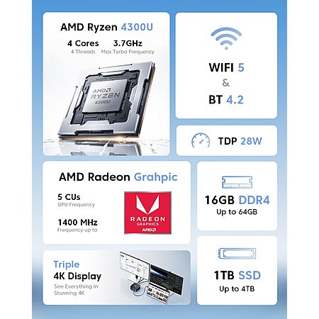 Prime: KAMRUI Pinova P1 Mini PC: Ryzen 3 4300U, 16GB RAM, 1TB SSD $296.99