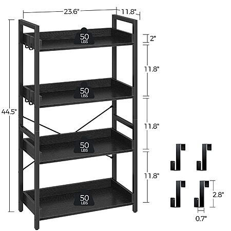Rolanstar 4-Tier Bookshelf w/ 4 Hooks (Black) on sale for