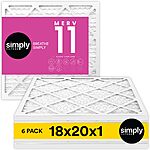 Simply 18x20x1 Air Filter, Merv 11, 6 Pack, For Home AC Furnace & HVAC $29.90 S&S AMAZON