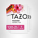 Amazon has for Select Accounts: 120 Total Tea Bags (20ct - Pack of 6) TAZO Passion Herbal Tea on sale for $14.79 - 25% clip coupon on the page, plus - 5% with Subscribe & Save, for a total of 30% off. Shipping is free w/ Prime or on $35+ orders.