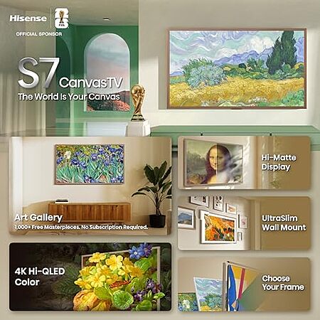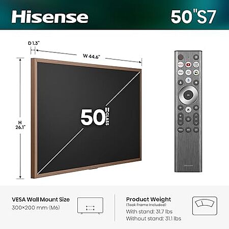 Model: Hisense - 50" Class S7 Canvas Series Smart Google TV 4K QLED Smart Google TV with Hi-Matte Display and UltraSlim Wall Mount (2026)