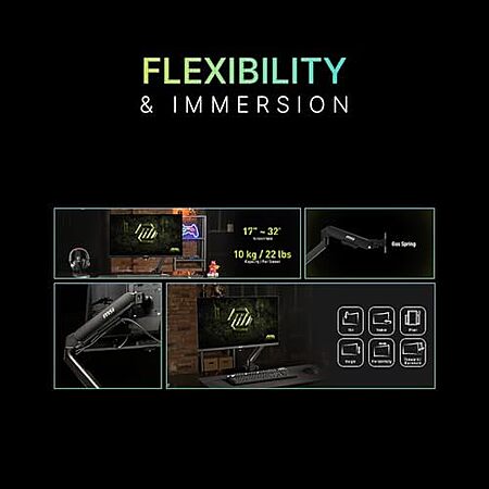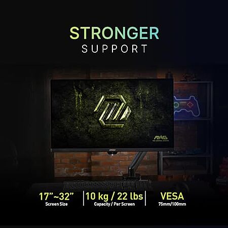Model: MSI MAG MT101G - Gas Spring Single Monitor Stand Arm, Supports 17-32" and 22 lbs, VESA Compatible, Adjustable Gas Spring Mount, Clamp & Grommet, Quick Release Plate – Black