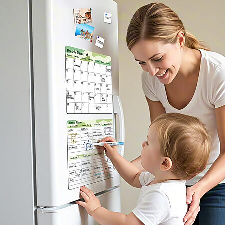 - Durable & Easy to Clean: The magnetic calendar for refrigerator features four layers, including a stain-resistant PET dry-erase surface. It wipes clean easily, even after 60 days of writing. For stubborn marks, just use a damp cloth. High-Definition Printing - vibrant colors ensure your plans are easy to read. Soft Magnetic Backing - you don't need to worry about it falling off or shifting, ensuring stability. UV Coating - protects your fridge's surface from wear